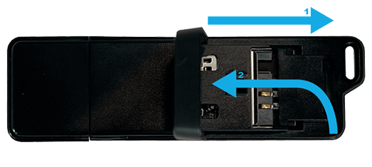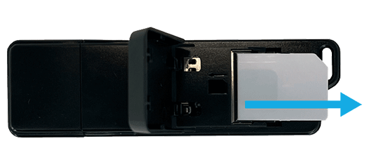 Abra o seu leitor Feitian SCR 301, primeiro, deslizando a zona de abertura que encontra na lateral do Token USB para o lado exterior e assim que sentir que a mesma ficou solta deverá levantar.